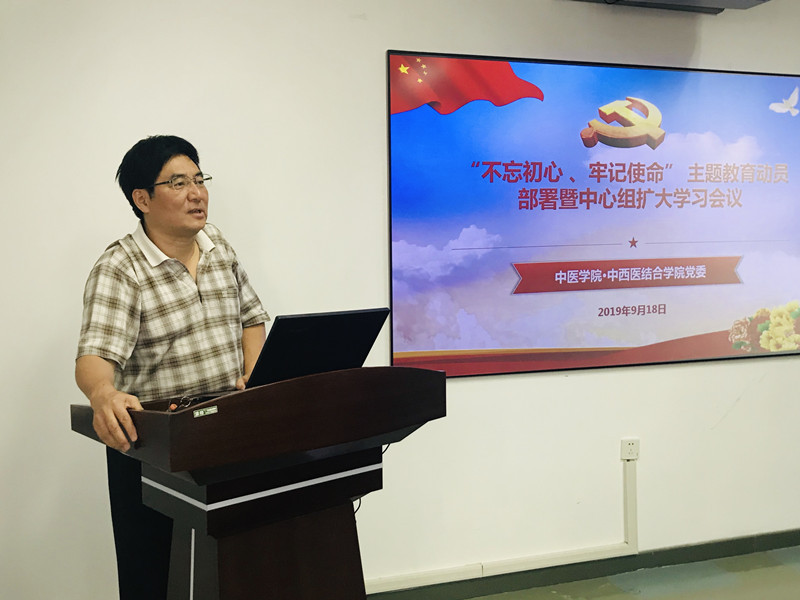 9月18日下午,williamhill官网·中西医结合公司党委在丰盛楼526会议室召开“不忘初心、牢记使命”主题教育动员部署暨中心组学习扩大会议。全体院领导、党委委员、支部书记、支委和科级干部参加了会议。会议由公司党委书记助理、经理助理周琼同志主持。