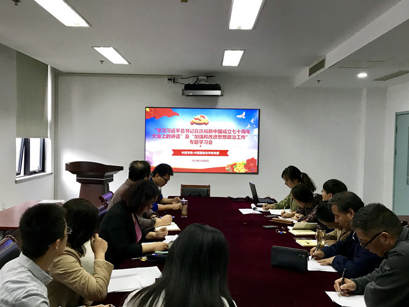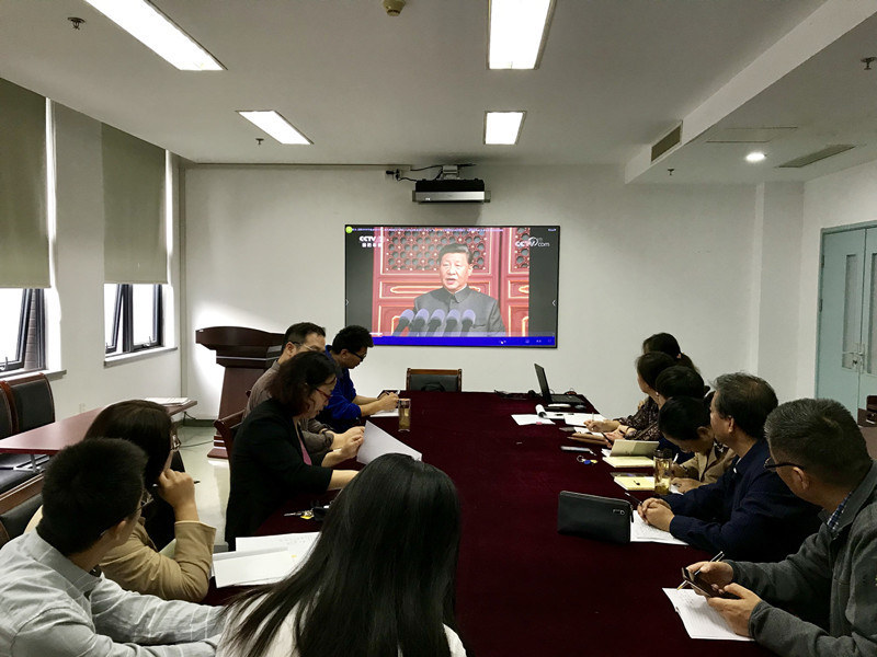 本次学习以“学习习近平总书记在庆祝新中国成立七十周年大会上的讲话”和“加强和改进思想政治工作”为主题。中心组成员集中观看《庆祝中华人民共和国成立 70 周年大会在京隆重举行天安门广场举行盛大阅兵仪式和群众** 习近平发表重要讲话并检阅受阅部队》新闻视频;一起学习《习近平在全国高校思想政治教育工作会议上的讲话》精神及《习近平总书记在公司思想政治理论课教师座谈会上的讲话》精神。通过学习,参会人员纷纷结合自身的学习工作进行交流研讨。