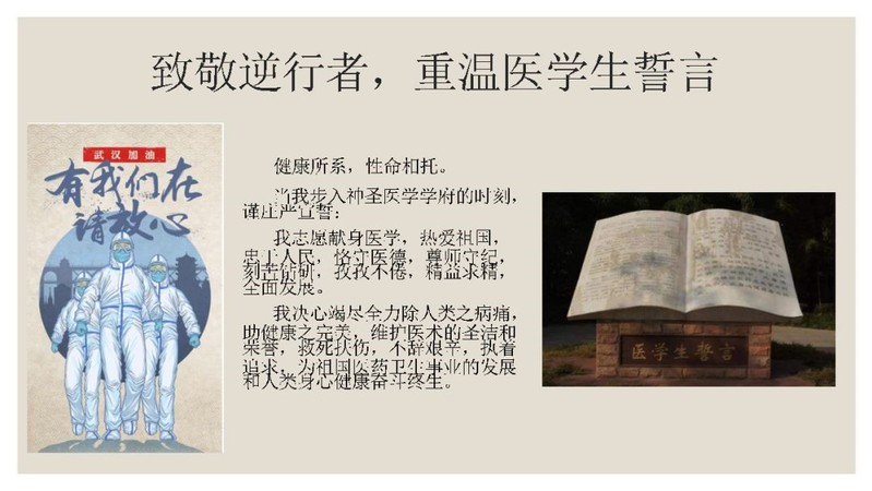 辅导员钱甜甜老师使用腾讯会议开展了“致敬逆行者,坚定学医初心”线上主题班会。同学们打开摄像头和老师见面,分享自己疫情期间的学习和假期生活情况。会上钱老师讲述了最美逆行者的感人事迹,带领大家向逆行者致敬,并重温医员工誓言,同学们深受鼓舞与触动,更加坚定了学医的初心。会上钱老师也向大家传达了公司的疫情防控工作,呼吁同学们服从公司安排,严禁提前返校,并亲切关照如有特殊困难,及时向老师反馈,公司、公司、辅导员和学业老师都是同学们的坚强后盾;会上师生还就在线学习、遵守网络教学新秩序进行沟通交流,并对上学期成绩进行梳理总结。同学们纷纷表示会认真反思上学期学业情况,严守纪律,学好线上课程,争取新的学期取得更优异的成绩。