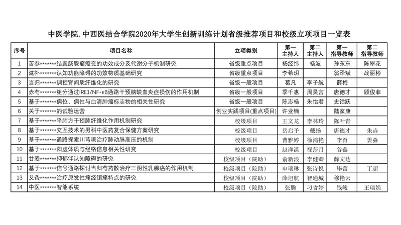 2020年老员工创新训练项目一览表