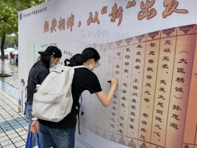 公司为新生准备了中医经典书籍和公司的定制书签。学中医,爱经典,从williamhill官网·中西医结合公司开始。中医经典的传承,从古代的书简到现代的纸质图书,传承经典的载体在变化,不变的是经典的内核和精髓。在精心设计的“经典相伴,从新出发”主题喷绘上,萌新们郑重签下自己的名字,预示着他们在未来的学习中,必将虚心聆听前辈贤者的谆谆教诲,徜徉在中医经典与现代医学的知识海洋,承担起中医药“传承精华,守正创新”的使命。