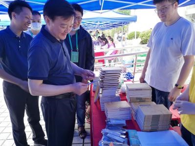 报到现场,公司党委程纯书记、乔学斌副董事长一行亲切看望慰问公司的新生、迎新志愿者和老师们,充分肯定了公司师生认真负责的工作态度,对我们为新生精心准备的《黄帝内经》等中医经典也十分赞赏。