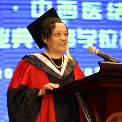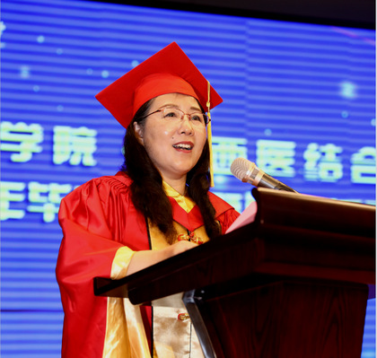 国家中医药高等公司教学名师、博士生导生吴承玉教授作为教师代表作了真挚的发言。她教诲毕业生们要将习近平总书记“不忘初心、牢记使命,守正创新”的叮嘱铭记于心;要有使命感、责任感和进取心,牢记中医基本理论、基本知识、基本技能,守住中医的根和魂,并追求创新和发展中医药。她希望毕业生养成良好的品德,看淡名利,救死扶伤,为中医药事业的传承与发展贡献力量,成为真正的民族脊梁。