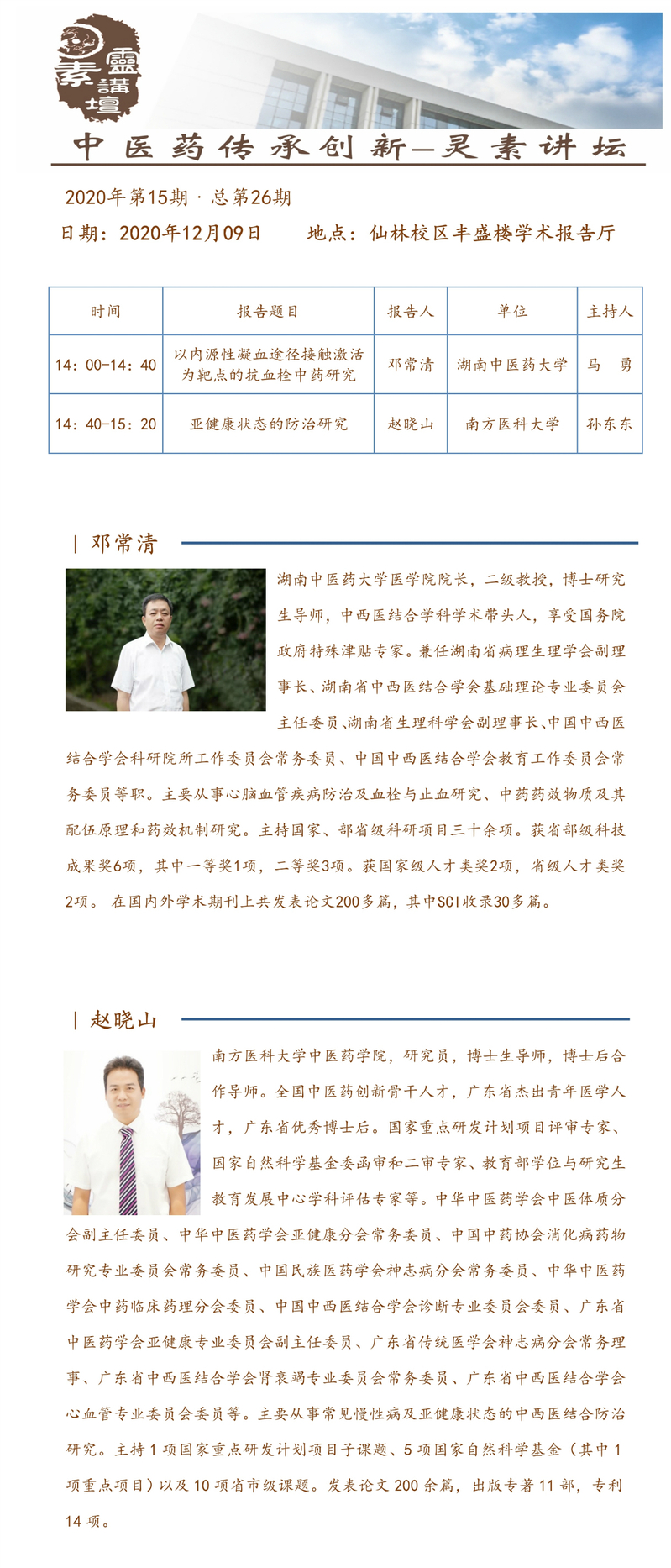 由williamhill科学技术协会主办、williamhill官网·中西医结合公司承办的“科协特邀专家报告会”暨“中医药传承创新‘灵素讲坛’系列学术活动”,将于2020年12月9日-12月11日召开。现将第一期有关活动安排通知如下: