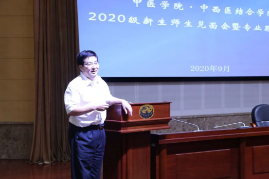 副经理张宏如为新生们介绍了该专业的人才培养方案。从专业历史沿革、中西医临床复合型人才的专业定位、学科强团队优质量高平台佳的特色优势、良好的人文、科学和职业素养的培养等方面告诉了同学们以后五年的学习历程。