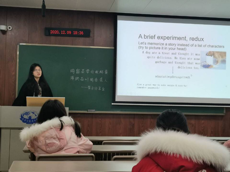 分享会尾声,谢楠希同学和邓永幸同学和大家强调了学习规划的重要性以及独立性、自身积极性的必要性。从期末备考和日常巩固方面,她们都建议同学们提前做好准备,和身边朋友共同学习,共同进步。
