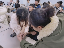 培训伊始,志愿部部长向同学们讲解了义诊活动中最基本的技能:量血压。她对量血压的步骤做了详细的介绍,并说明了一些有可能遇到的突发状况和问题以及应对方法。接着,她又依次介绍了刮痧、艾灸、推拿三种传统中医技能,并向同学们演示具体操作方法,带领同学们进行了准确的穴位定位。在讲解过程中,同学们还通过观看相关视频来直观地了解和学习推拿的各种手法。讲解结束后,同学们都跃跃欲试,与周围的同学相互练习交流,形成了友好活跃的学习氛围。部长们还进行了一对一、一对多的示范教学,指导和纠正同学们的手法。
