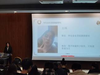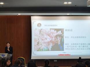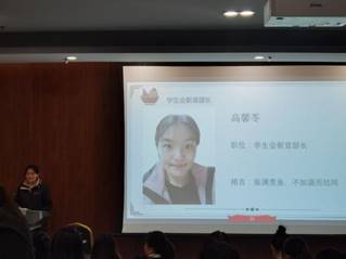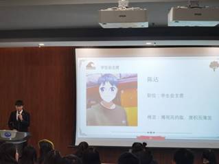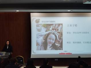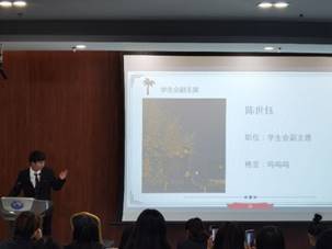 19级员工会骨干们依次上台发言。员工会主席陈达同学总结了本学期员工会的工作,并对未来的工作提出了规划和要求。副主席高逸航同学、陈世钰同学,新宣中心部长兼新媒体中心主任陆佳钰同学,新宣部长高馨苓同学,员工会办公室部长王涛同学,文体部部长谢楠希同学,外联部部长顾婧茹同学,学习部部长王宋子晗同学和生活实践部部长王珏同学分别发表了就职演讲。