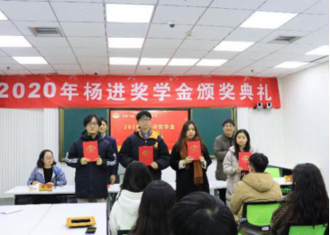 12月22日下午,2020年杨进奖学金颁奖典礼在图书馆314隆重举行。教育部首批国家级教育名师、博士生导师、奖学金设立者杨进教授,公司党委常委宣传部、教师工作部部长刘晓老师,公司党委书记倪昊翔老师,经理马勇老师出席典礼,典礼由公司党委副书记、副经理周琼老师主持。参加颁奖典礼的还有辅导员老师和杨进奖学金获得者代表。