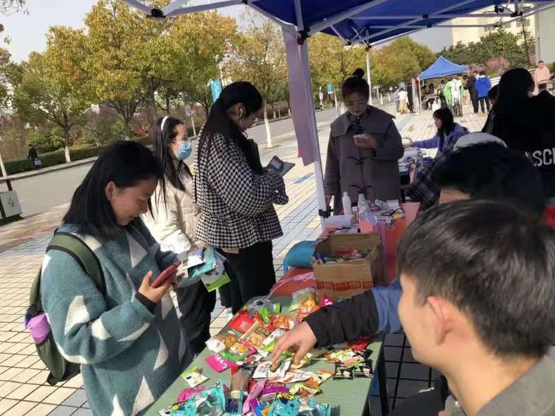 3月21日下午,志愿者们提前到达义卖活动地点,布置义卖摊位。爱心义卖现场热闹非凡,摊位上义卖物品琳琅满目,吸引了很多路过的同学前来挑选。志愿者们热情地为同学们介绍义卖物品以及此次义卖活动的意义。虽然在义卖过程中刮起了大风,但是依旧吹不散同学们献爱心的热情。一次次的“交易成功”,不仅仅是物品与货币之间的交换,更是同学们心与心之间的爱心传递。最后,志愿者们对义卖所得收益进行核对,并将其捐献至联合国儿童基金会驻华办事处。