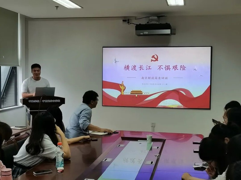 最后,王一明老师进行了以“横渡长江,解放南京”为主题的党课展示,他讲述了中国共产党如何在艰难情况下层层部署,动员一切可利用资源,实现中国大陆的解放的过程。同时,他也借此激励团委员工骨干们要在活动中积极锻炼自己,抓住机遇,促进全面发展。