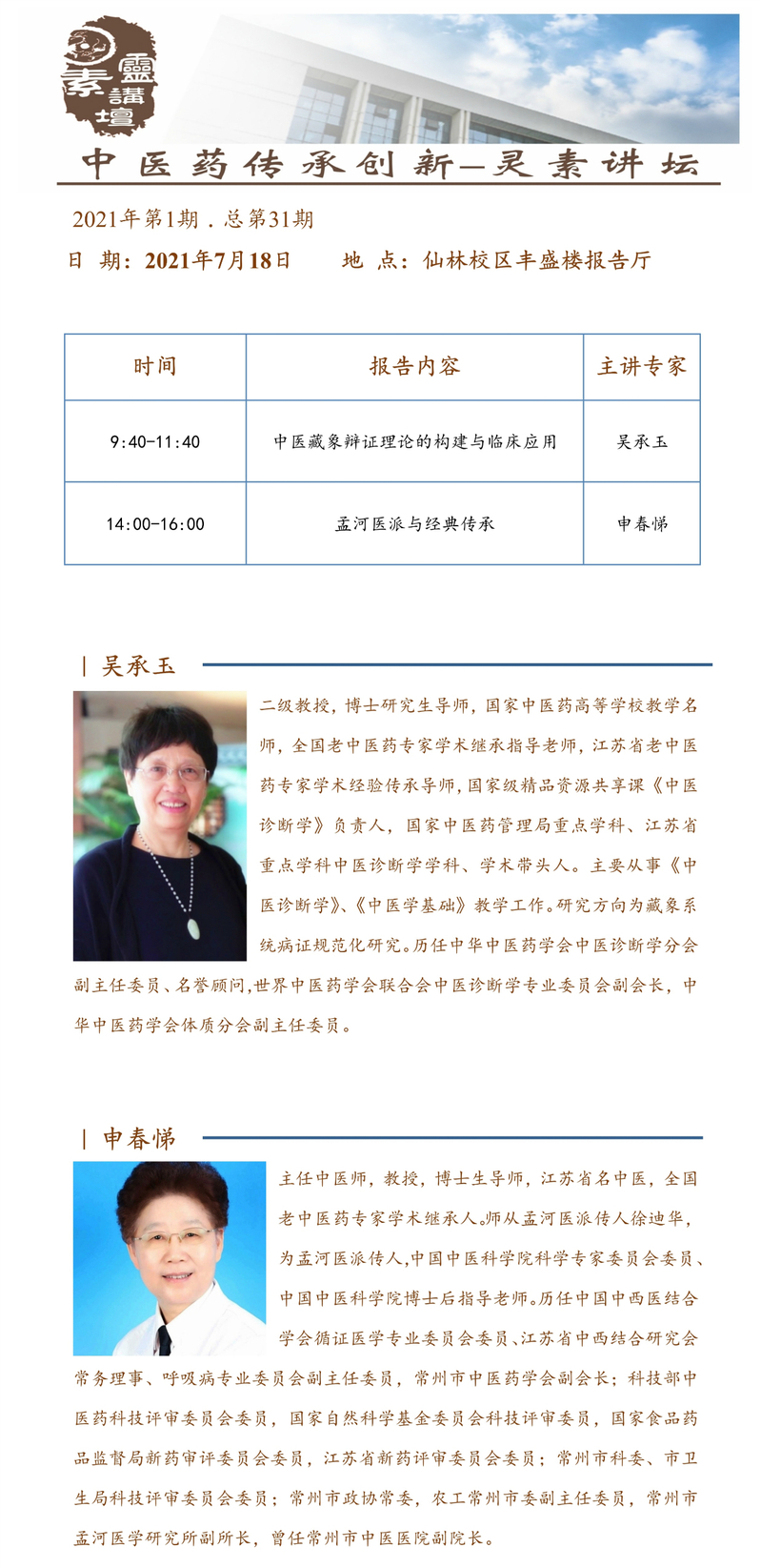 中医药传承创新“灵素讲坛”第三十一期暨暑期公司系列讲座通知