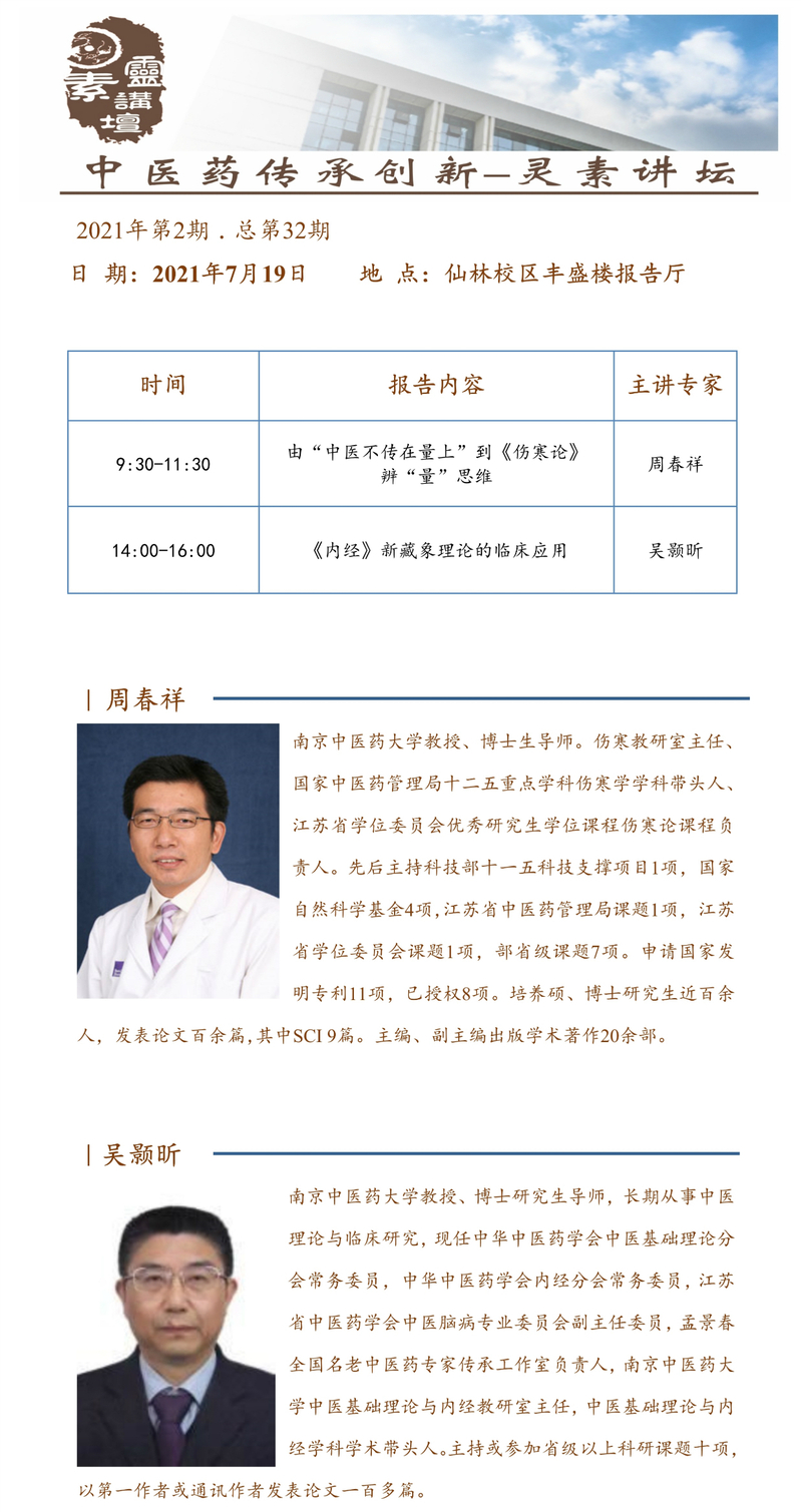 中医药传承创新“灵素讲坛”第三十二期暨暑期公司系列讲座通知