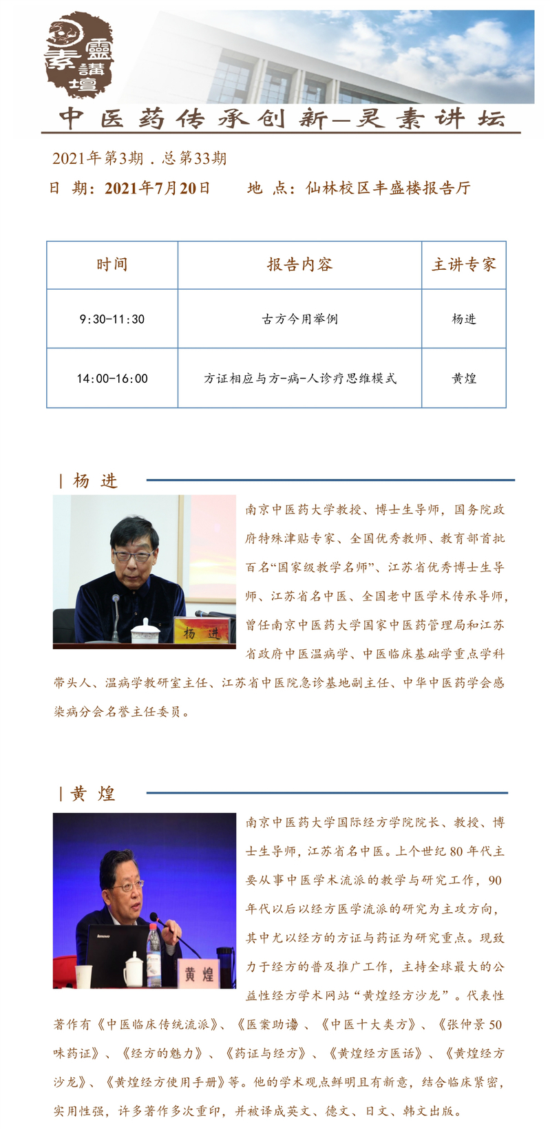中医药传承创新“灵素讲坛”第三十三期暨暑期公司系列讲座通知