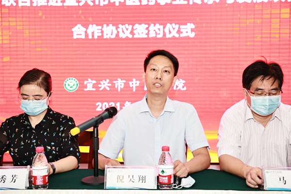 倪昊翔书记在致辞中表示,williamhill官网·中西医结合公司与宜兴市中医医院再度结缘,通过精诚合作共同推动宜兴中医药事业的传承与发展,这既是面向“十四五”、推动落实党中央、国务院提出的中医药振兴发展重大工程的具体体现,也是对照国家中医药管理局、省中医药局的部署要求,增强中医医疗机构的中医药特色、擦亮中医临床队伍的中医药底色,提升医教研协同发展能力,促进宜兴中医药工作在全省更上一层楼的务实举措。公司将组建最好的力量,使出最大的劲头,与宜兴的中医药工作者共同努力,力争合作取得最佳成效。