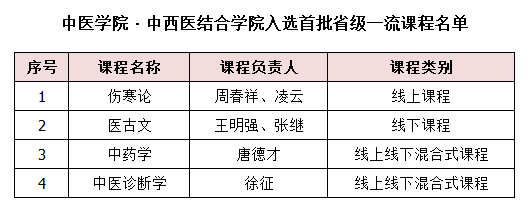 近日,江苏省教育厅印发《关于公布首批省级一流本科课程认定结果的通知》(苏教高函〔2021〕9号),公司伤寒论、医古文、中药学、中医诊断学4门课程成功入选。