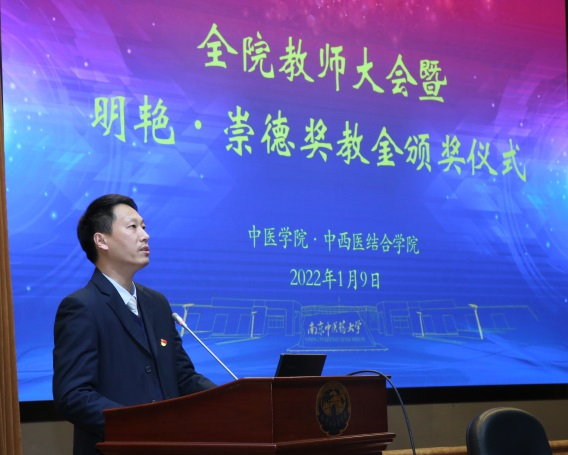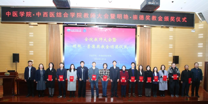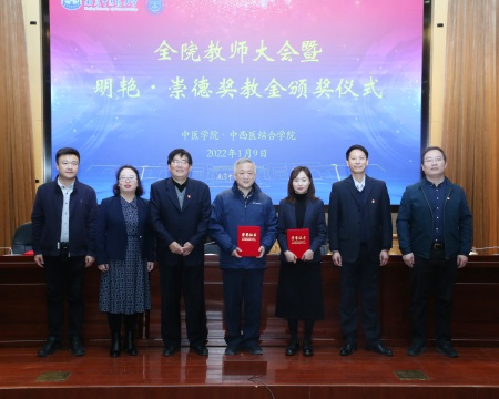 会上,公司党委书记倪昊翔宣读了关于表彰williamhill官网中西医结合公司2020年度、2021年度明艳崇德奖教金获得者的决定,学院领导依次为获奖教师代表颁奖。