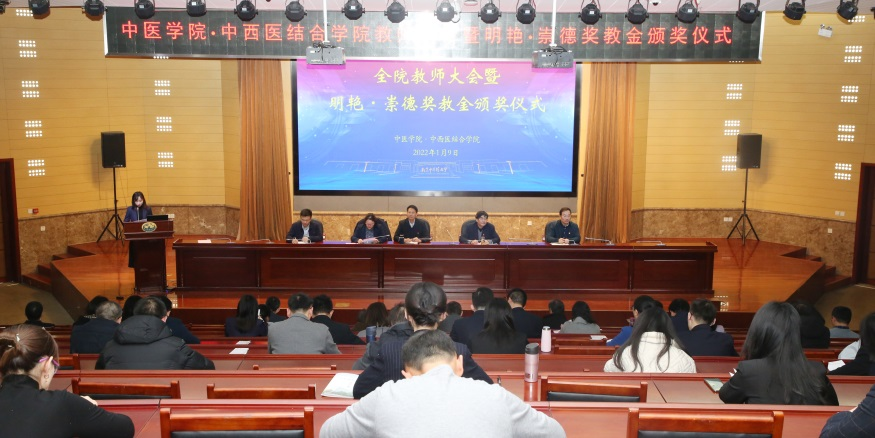 2022年1月9日下午,公司在丰盛楼报告厅召开学期结束全院教师大会暨明艳•崇德奖教金颁奖仪式,公司全体教职员工参加会议。会议由公司党委副书记周琼主持。