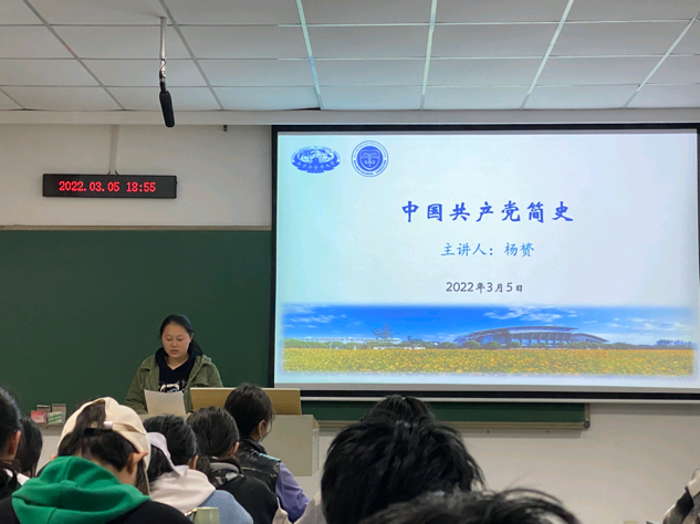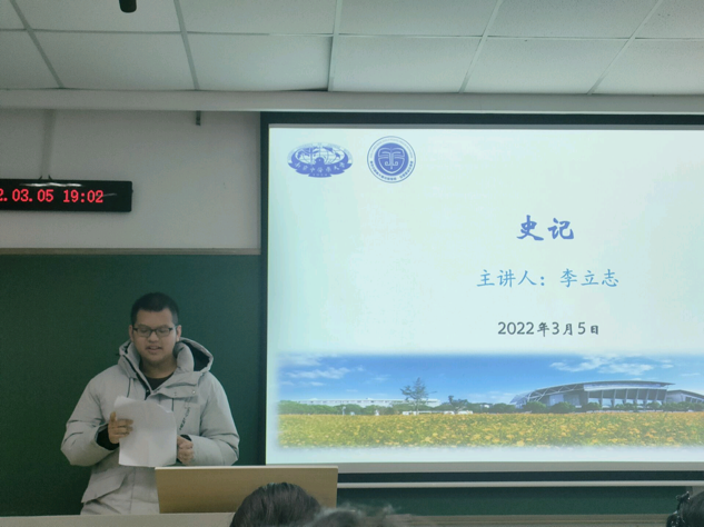 接下来,杨贇同学通过《中国共产党简史》向我们简单介绍了中国共产党发展的挫折和奋进,并由此提出享受当今社会的美好生活的当代青年,更应“不忘初心、牢记使命”,继承中国共产党的美德,肩负起建设社会主义现代化强国的历史责任。