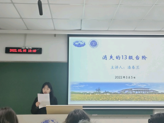接着,潘春兰同学用《消失的13层台阶》里扑朔迷离的曲折剧情,引起了同学们对法律的思考:人性的多面性允许人们逾越法律吗?她对此做出解答,认为法律是维护公平正义的武器,并肯定不断完善的法律对管理社会的重要性。