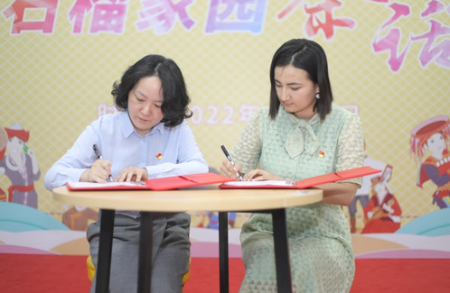 一首铿锵有力的“民族团结之歌”拉开了活动的序幕。张继副教授代表首批江苏省党建工作样板支部教工第二党支部与民族预科班辅导员阿丽米热老师签署了共建协议。