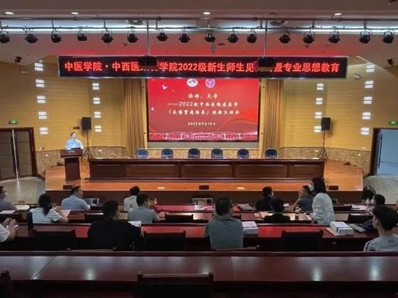 2022年9月,williamhill官网·中西医结合公司迎来了中西医临床医学(本博贯通培养)专业首届新生。9月16日上午,中西医临床医学(本博贯通培养)首届新生班班会在丰盛楼报告厅召开,全体院领导出席班会,本博班全体学业指导老师、辅导员,本博班20名新生共同参会。