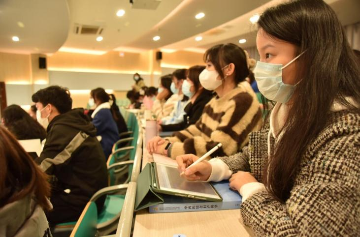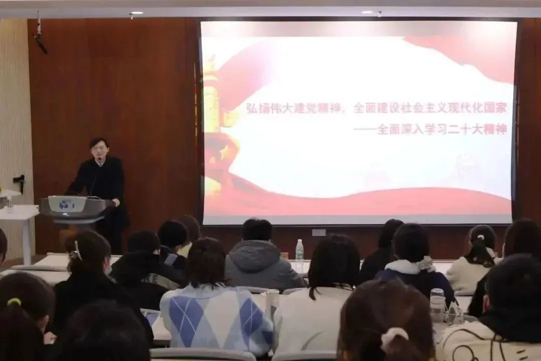 孙元老师结合二十大报告中“过去五年的工作和新时代十年的伟大变革”、“开辟马克思主义中国化新境界”、“新时代新征程中国共产党的使命任务”三方面,强调用科学理论武装头脑的重要性,引导同学们将小我融入大我,将个人追求同社会和人民的需要紧密联系,为全面建设社会主义现代化国家而团结奋斗。