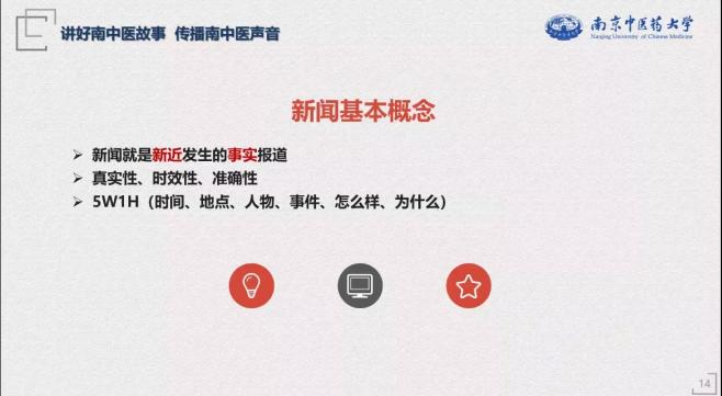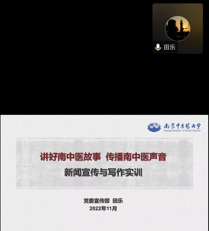 为了帮助“青马班”学员熟练掌握新闻宣传稿的写作方法,提升书面表达技能,11月23日晚,公司分团委在线上开展了第三期“青马工程”“志行班”第三讲——“新闻宣传与写作实训”活动,青马班全体学员参会,本讲由校党委宣传部田乐老师主讲。 田乐老师由习近平总书记在全国宣传思想工作会议上的讲话引入培训内容,从“高校新闻宣传工作的意义”、“我们身边有哪些好故事”、“怎样讲好南中医故事”三个板块展开讲解。首先,田乐老师从宏观、中观、微观三个层面阐释了新闻宣传工作在高校的意义;接着,田乐老师结合相关事例指出,要善于发现身边生动鲜活的好故事,强调讲故事过程当中独特性、稀缺性、唯一性、优质性、新颖性、服务性这六大着力点;最后,田老师结合大量实际新闻宣传的案例,用“多读多看、精心策划、勤练修改”这十二字精炼概括了提升新闻稿撰写质量、讲好南中医故事的方法。 通过本次培训,学员们充分认识到新闻宣传工作的重要性,切实提高了同学们的写作与新闻宣传能力。