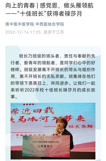 榜样给人以力量。公司充分发挥榜样的先锋模范和引领示范作用,用身边人讲身边事,身边事教身边人,营造崇尚先进、学习优秀、争创先锋的良好氛围,强化优良学风建设。公司积极向公司推荐“我和我的大学”宣讲团成员,在公司微信公众号等宣传十佳班级、十佳班长等榜样的优秀事迹,开展优秀笔记评选,激发广大同学学习的内生动力,助推公司学风建设。