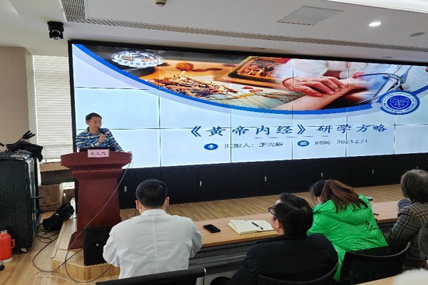 伤寒教研室马俊杰老师为溧水区中医院医护人员作“《伤寒论》相反相成临证思路探析”授课,中医基础理论与内经教研室王光耀老师作“《黄帝内经》研学方略”授课,并就训练中医临床思维能力、提高临床辨证论治综合能力等与临床专家、医疗骨干交流探讨。授课现场气氛热烈,授课内容具有很强的理论指导性、实用性,受到广大医护人员的普遍欢迎。