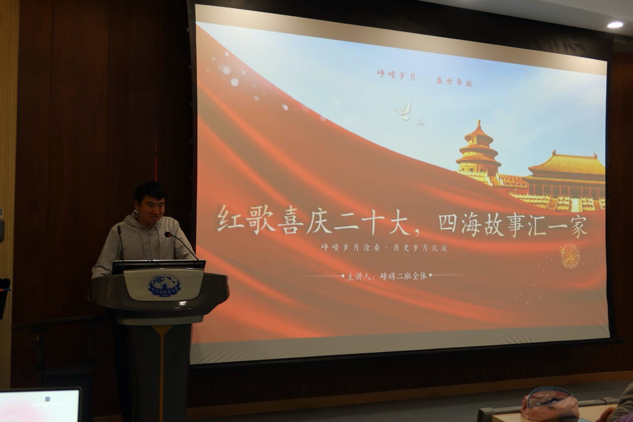 为了更好地植根同学们的爱国爱党情怀、庆祝党的二十大的顺利召开,中西临222班团支部组织的第一次团日活动于10月23日晚在B7-102举行。 本次班级团日活动主要分为三个流程: (一)你唱红歌我来猜 在大家耳熟能详的红歌《长江之歌》中,活动正式开始,同学们都踊跃参与猜歌环节,气氛也变得活跃起来。 (二)五湖四海同胞来,八方故事汇一家 红色故事万万千,五湖四海为一家。来自全国各地的同学们在已分组的情况下,结合制作好的PPT向大家介绍了自己家乡的红色景点和红色人物故事。 (三)紧随时事跟党走,争做先锋好青年 在人民日报官方视频里,张桂梅老师、张定宇院士、祁发宝战士等人都给予了同学们极大的精神力量,鼓舞着我们怀揣梦想向前方出发,为祖国贡献自己的青春年华。 知所从来,方明所去。党的二十大如期召开,在此也希望同学们通过本次团日活动提高思想觉悟、永葆党的先进性与纯洁性,在未来道路上劈波斩浪、踔厉奋发!