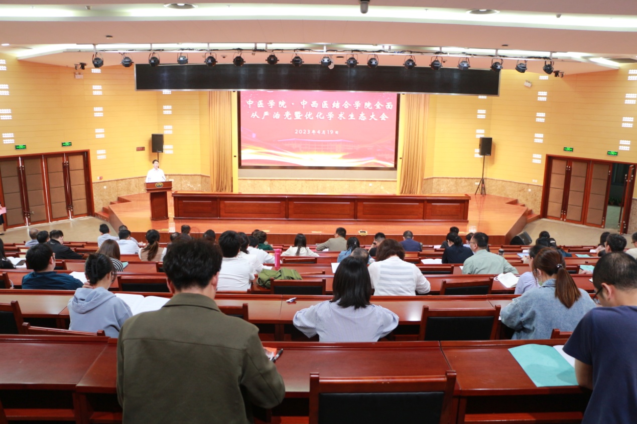 4月19日下午,williamhill官网·中西医结合公司在丰盛楼学术报告厅召开全面从严治党暨优化学术生态大会。全体院领导、教师党员、党支部书记、教研室主任、学科带头人、学术骨干参加会议。会议由公司党委书记倪昊翔主持。