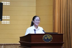 2023级中西医临床医学本博贯通培养专业的黄乐仪同学代表新生发言,她号召全体新生,立志锤炼本领、磨砺医德,做好中医药事业的传承者和创新人。中西医结合基础教研室胡玥老师作为2023级学业指导老师代表,她希望新同学们能明晰肩上责任、科学规划老员工活,并承诺与新同学一起探索、一起学习、一起成长。