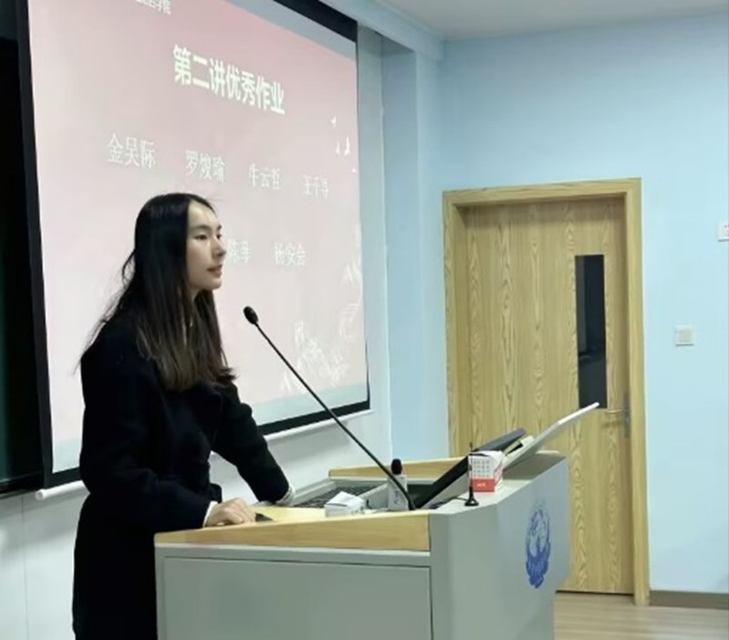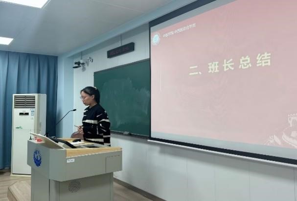 接着,本次青马班的班长史潇璇同学对青马班学习进行总结。史潇璇和同学们一起回顾了在青马班五讲学习中的收获,表示在学习中拓宽了视野,提高了综合能力,作为青年学子,应继续加强政治理论的学习,成为合格的时代接班人。