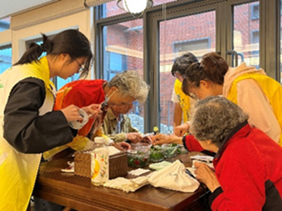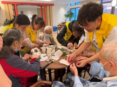活动最后,老人们带着满意的作品与志愿者们留下了灿烂的合照,志愿者们也在爷爷奶奶的鼓励中更加肯定了自己的价值、坚定了传承中医药文化的选择。