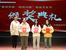 公司老师为在宿舍文化节活动中的优胜宿舍进行颁奖。
