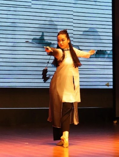 刘映璇同学带来的中国舞独舞《簪花引》,舞姿翩翩,云卷云舒,让大家领略了古典舞的别样风采;舞蹈团成员赫景淇同学的国风舞蹈表演《水龙吟》将民乐与舞蹈结合,展现出华夏儿女雄姿英发的活力。