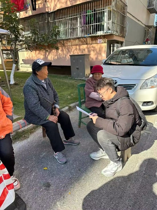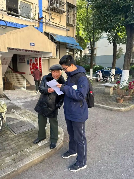 尽管很多同学并不是南京本地人,与操着一口南京话的爷爷奶奶们交流并不是那么顺利,但是怀着一颗热忱的志愿之心,他们克服了心中的小小恐惧,勇敢地开口询问,仔细地倾听老人的一字一句,认真地记录下他们的意见和建议。