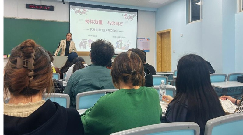 会上,来自不同年级和专业的优秀学姐与同学们分享经验心得。来自针灸推拿公司·养生康复公司21级的艾斯玛·艾力同学以自己的三年以来的大学学习经历为例,分别分享了她预科阶段的学习方法、学习心态,以及她在大学学习的经验和见解,为员工们指明了学业的方向。她讲述了努力、方法、方向三者的重要性,同时给同学们分享了做好学习计划和时间规划的方法,并着重强调:每个人在自己的领域都可以发光发热,只要坚持自己的选择,努力追求梦想,就一定能够取得成功。来自针灸推拿公司·养生康复公司23级的依热代木·阿卜力米提从自身经验出发,鼓励同学们积极参加班级、员工会以及各种比赛,锻炼自己的能力,她提醒大家务必要重视锻炼自己的机会;通过两位学姐的分享,同学们对学业的了解更为全面、深刻,对未来的学业规划和发展增添了诸多有益的启示。