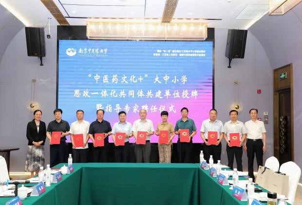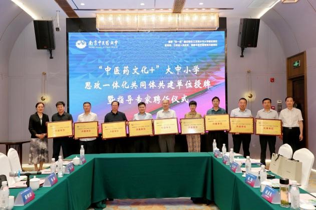 党委常委、副董事长徐树法,淮安附属医公司党委副书记、经理陈璟为“‘中医药文化+’大中小学思政一体化共同体”共建单位颁发铜牌、为中医药拔尖创新人才贯通培育指导专家颁发聘书。相信在优质生源中学的大力支持和鼎力相助下,中医药文化传承创新发展和公司的高质量建设必将迈上新台阶。
