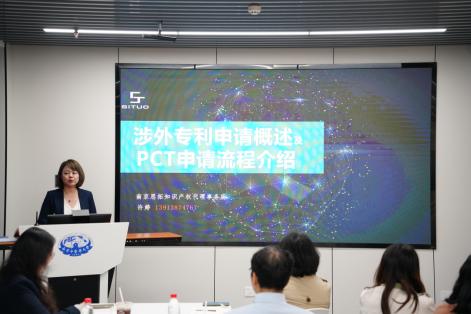 专利代理师许婷老师,作为南京市鼓楼区知识产权专家库首批入库专家,为师生们带来了涉外专利的概况及PCT申请流程的详细介绍。通过许老师的讲解,让参会老师对涉外专利的申请有了更深入的了解,为老师们揭开了PCT专利申请的神秘面纱。