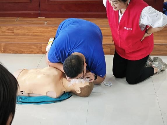 为进一步普及应急救护知识,提高辖区居民在突发事件中的自救、互救能力,5月24日,中医(定向)23级1班团支部来到康居社区组织开展“救护之手,传承中药——急救培训暨中医药宣讲“主题团日活动。第一部分是“人人学急救,急救为人人”应急救护培训活动。本次培训采取“理论+实训”模式。理论宣讲环节,区红十字会贾素平老师用浅显易懂的语言对应急救护新概念、气道梗塞急救法、心肺复苏理论实操、创伤救护理论实操等进行讲解。培训结束后,老员工志愿者孙兆东就中医药文化概述、中医药基础理论、常见中草药介绍与功效、中医药养生保健方法、中医药特色疗法与优势、中医药文化的现代认知与传承六个方面与参训人员进行了分享。