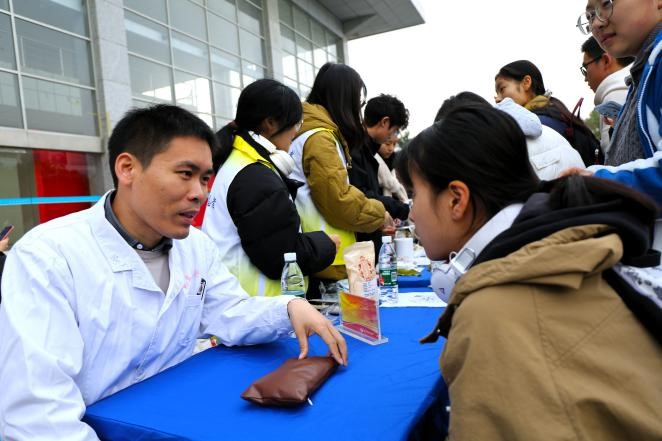 此外,仙林校区还设有中医问诊特色环节。公司温病教研室的汪伯川老师运用切脉、望色、听声、写形等传统中医诊断技法,耐心细致地为员工诊断,并根据具体情况提供了专业的调养建议,有效解决了员工的睡眠困扰等问题。