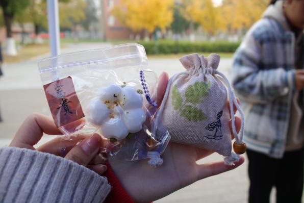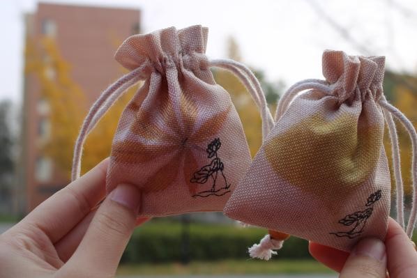 接着,他们将具有宁心安神功效的中草药粉末装入香囊中,中药的馨香与植物拓染的艺术美感交相辉映。一枚小小的香囊,不仅蕴含着传统中医药文化的精髓,也寄托了员工对健康生活的向往。