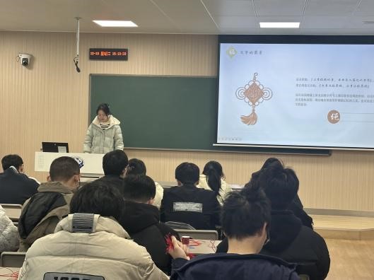 紧接着,孙韩赟同学为大家介绍了中国结的历史渊源、基本结法、结饰含义和时代内涵。“结”字可以引申为“吉”字,体现了人们对美好生活的追求和向往。中国结是一种中国传统手工编织工艺品,凝聚了中华民族的人文情怀。