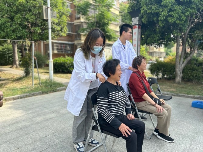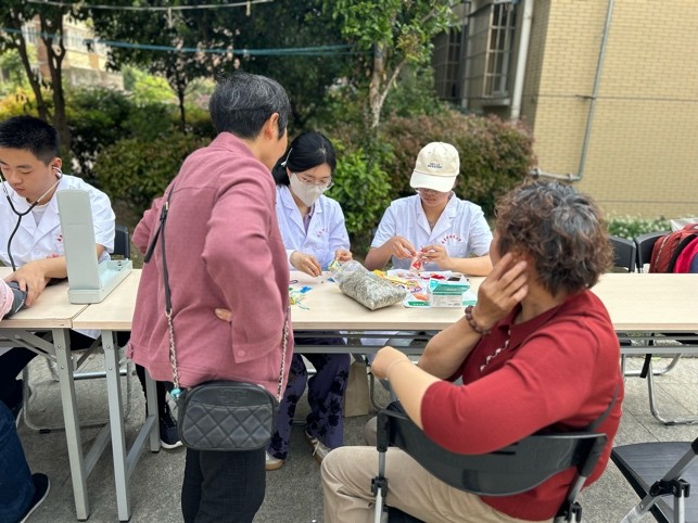 在活动现场,志愿者们认真负责,为每一位前来的居民提供悉心的健康服务。本科生志愿者主要提供了推拿、量血压和耳穴埋籽等中医特色服务。研究生志愿者运用所学知识,耐心解答居民的健康疑问,给予合理的生活建议。此外,志愿者还制作香囊,并赠送给前来咨询的居民群众,现场气氛热烈,互动频繁。
