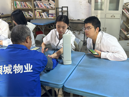 同学们在社区工作人员的带领下来到了桦墅学堂进行义诊,义诊项目有健康科普、中医药文化宣传、量血压、推拿、制作香囊和医师坐诊。通过劳动义诊,让同学们学习的医学理论与临床实践相结合,同时接触社会基层,增长阅历,磨练技能,放松身心。通过亲身参与,同学们切身体会到了义诊的成就与快乐,增强了对医生职业的认同与尊重,对未来学习生活、职业规划有了更多的思考与前进动力。