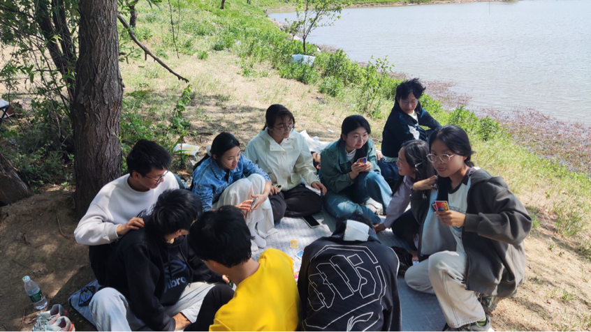 义诊结束后,班主任汪伯川老师带领班级同学在周冲水库和周边生态旅游地进行班级团建活动。同学们行走在田间地头,交流学习生活中遇到的困难,分享获得知识、增长阅历的快乐。汪老师教大家辨识路边遇到的草药,认识了“泽漆”“蒲公英”“车前草”等草药,拉近了大家与本草的距离,让书本知识走进生活实践。班长闫梦宇同学组织大家一起玩UNO卡牌,男女生同学一起互动游戏,分享零食,潜移默化中增进了同学间感情,深化了班级的凝聚力。