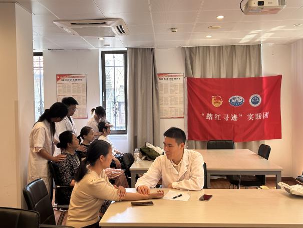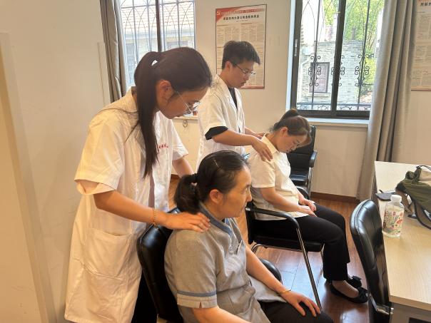 秉持着“学以致用”的教育思想,实践团成员们一起来到了中共代表团梅园新村纪念馆参观的同时,还进行了爱心义诊志愿服务活动。30余名实践团成员结合中医药专业特色,在周恩来图书馆二楼设立“健康驿站”,划分为义诊咨询区、中医体验区与健康咨询区三大板块,为大家提供测量血压、健康咨询、中医推拿等服务,以实际行动践行新时代青年医者的责任担当。